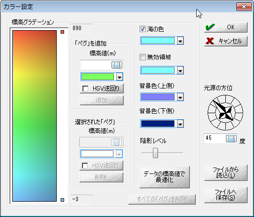 d7 「ファイルを開く」ダイアログで「東京カラーマップ.hcrm(「18 - 基盤地図情報 数値標高モデル 1 - 地図画像」参照)を選択し、「開く」ボタンをクリックします。