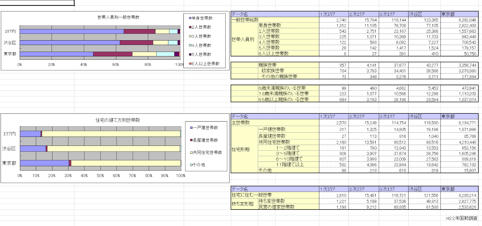 ※ 使用する国勢調査の調査年次は、レポートウィザードで選択した年次のものです。(これは各シート右下隅の 出典に記載されています。)