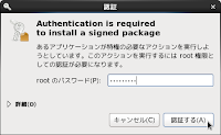 「認証」ウィンドウが表示されたら root のパスワードを入力して「認証する」ボタンをクリックします。
